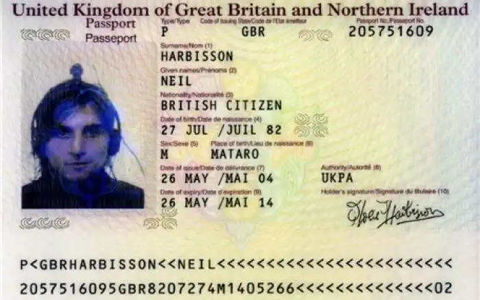 Удостоверение личности Нила Харбиссона. Источник изображения: wikimedia.org