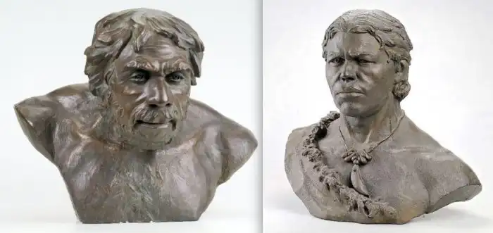Неандерталец (слева) и кроманьонец. Реконструкция внешнлего вида по костям черепа