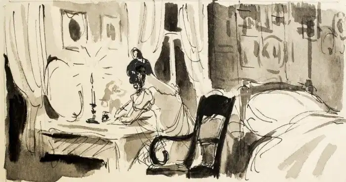 В 1829 году в журнале "Невский альманах" была опубликована очередная глава Пушкинского романа "Евгений Онегин". Третья - та самая, в которой цитируется знаменитое письмо Татьяны. Иллюстрировал роман молодой художник Иоганн-Вильгельм Нотбек (на тот момент ему было 27 лет - меньше, чем автору романа).