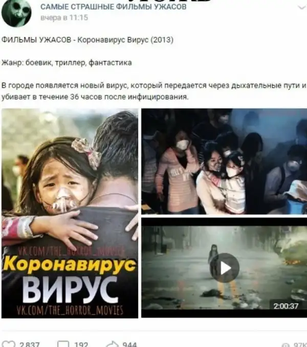На тему вируса - куча фейков. Этот фильм называется просто "Вирус" слово коронавирус дописали уже сейчас