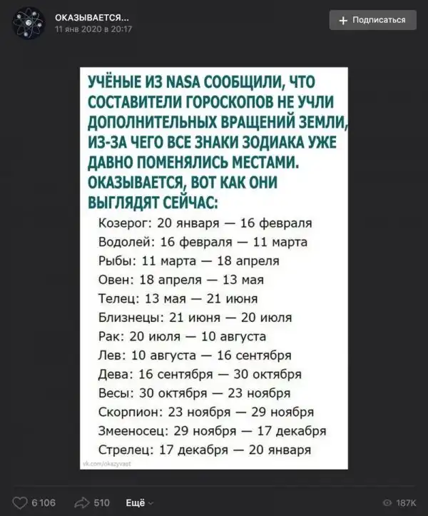 И NASA не меняли положения знаков, а просто провели математические вычисления, чтобы показать, что астрология - это пережиток прошлого.