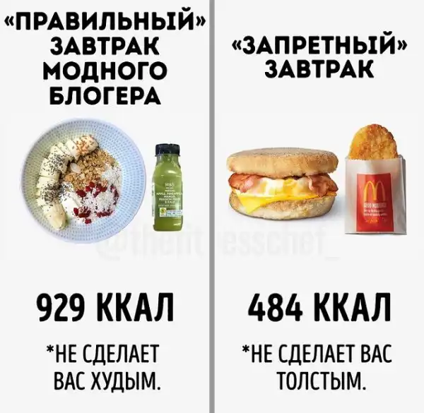 Куда ни глянь - везде фитоняшки, спортсмены и поклонники здорового образа жизни. Эти ребята каждый день высчитывают калории и проповедуют "правильное" питание. Для таких людей съесть гамбургер и запить его газировкой - это билет сразу в ад. Мы привыкли к тому, что фастфуд - это жирная и вредная пища, бесчисленные шоколадки и сладкие напитки - это прямой путь к ожирению и диабету. Но действительно ли все так плохо? Популярный Instagram-нутрициолог Грэм Томлинсон считает, что все это мифы. Он регулярно развенчивает домыслы о "правильном" рационе и призывает людей помнить, что для похудения важен дефицит калорий. Давайте посмотрим.
