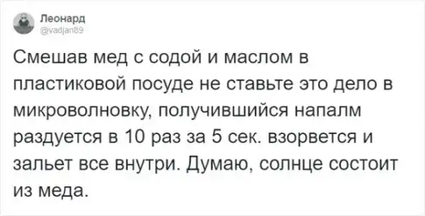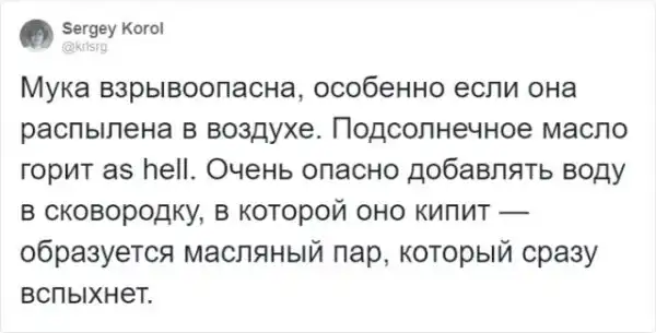 Опасность подстерегает нас на каждом шагу. Казалось бы, самые безобидные вещи, могут быть смертельно опасными. Достаточно вспомнить, как блогерша Екатерина Диденко отметила день рождения в сауне. Сухой лед стал причиной смерти трех человек. Возможно этот инцидент вдохновил этого пользователя на научно-познавательный тред в Твиттере. Давайте посмотрим.