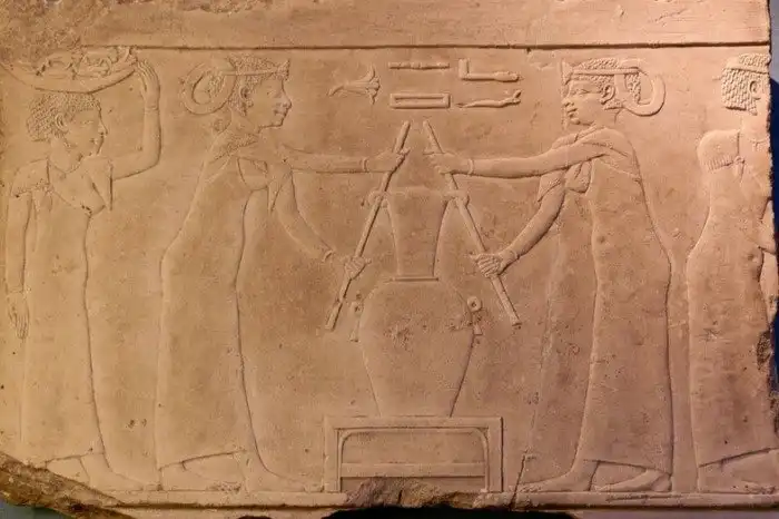 Производство духов, известняк, фрагмент из древнеегипетской гробницы IV века до н. э.