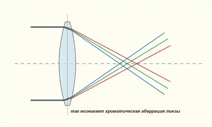 Однако когда астрономы начали строить телескопы по системе Кеплера, они обнаружили отвратительное, неприятное, ужасное явление: при попытке получить сильное увеличение изображение в окуляре телескопа размазывалось, расплывалось и окрашивалось во все цвета радуги. Разглядеть, что же там такое видно, было просто невозможно. Открытое явление назвали «цветовым искажением», или по-научному «хроматической аберрацией».