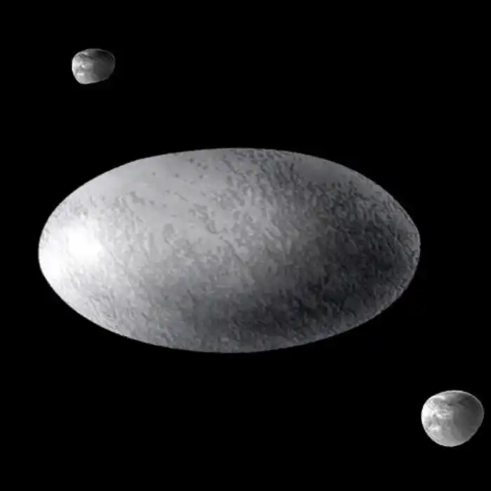 Её диаметр – всего 100 километров, тем не менее у малютки есть два спутника и целая система колец. Хаумеа, как и наша Земля, является спутником Солнца. Период её обращения вокруг Солнца – около 282 земных лет.