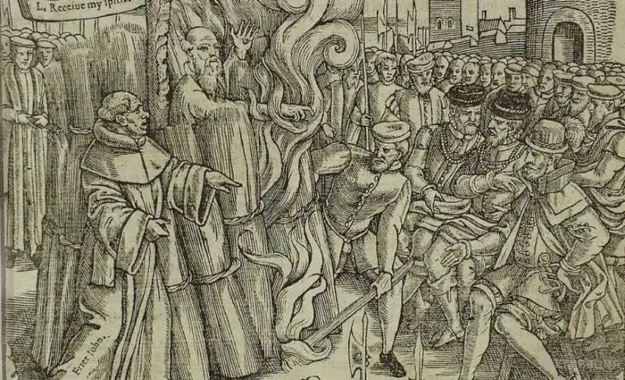 Казнь епископа Кентерберийского. (Так Мария Тюдор "исправляла" религиозную реформу отца. Не помогло - англичане так и остались протестантами-англиканцами)