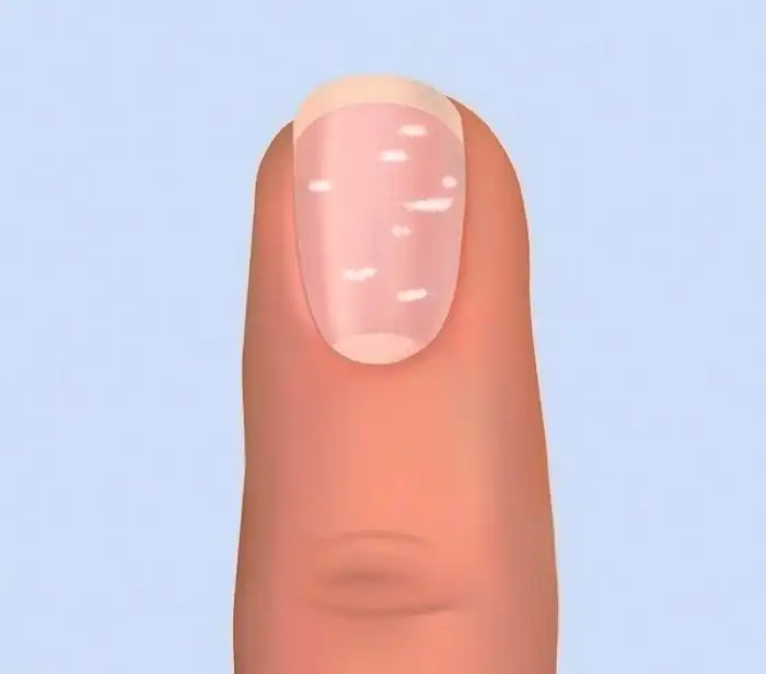При лейконихии вместо жира и воды прослойку заполняет воздух. Он бесцветен, но на фоне ногтя выглядит белым. Поэтому, вопреки распространенному мнению, лейконихия не свидетельствует о дефиците цинка и других микроэлементов. Вместо этого, патология может говорить об огромном количестве нарушений в работе организма.