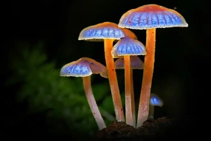 Хотя грибы и растения не связаны, та же молекула, которая вызывает биолюминесценцию грибов - кофеиновая кислота также была обнаружена в клеточных стенках большинства растений.