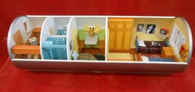 Внутреннее пространство ЦУБа разделено на зоны. Одно такое жилище предназначалось для проживания четырех человек. В нем находятся тамбур-котельная, гостиная, спальня, кухня и санузел. Вмонтированная емкость с водой и нагреватель обеспечивают жильцов как холодной, так и горячей водой. Под полом находится отопление, система вентиляции располагается над потолком. Все настолько хорошо рассчитано, что тепло распределяется равномерно по всему помещению и не образуется конденсат. В ряде моделей присутствует и душ. Мебель здесь встроенная, что позволяет максимально оптимизировать внутреннее пространство.
