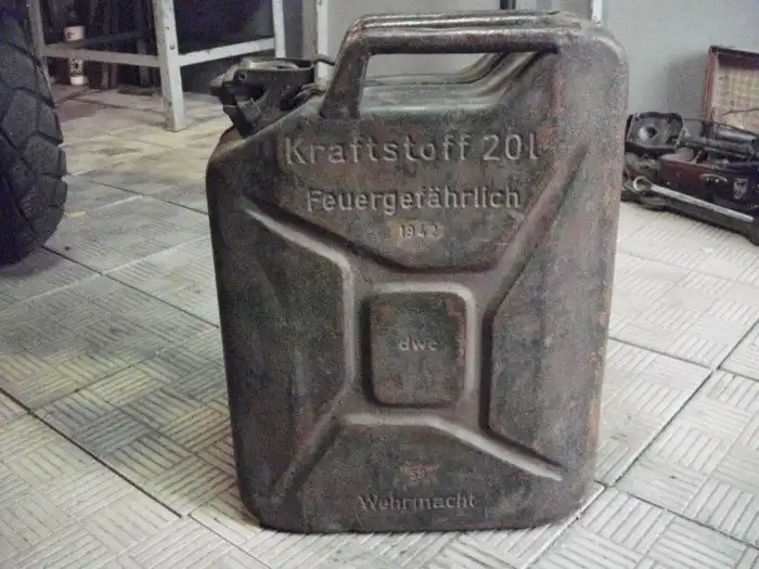 Впервые канистра в таком дизайне появилась в фашистской Германии. Ее автор - инженер Винценц Грюнвогель, перед которым поставили задачу разработать эффективный дизайн канистры для военных нужд.