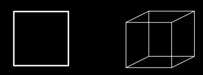 Работу множества измерений можно также изобразить на квадрате и кубе. В двухмерном пространстве (длина и ширина) куб будет выглядеть как квадрат. Но у него есть и третье измерение - высота. Так же и Вселенная может выглядеть по-другому в дополнительных измерениях.