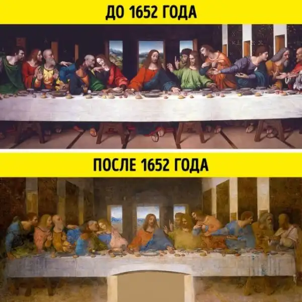 Леонардо да Винчи изобразил ноги Иисуса, однако в 1652 году во время ремонта церкви было решено добавить еще один дверной проем. Поэтому знаменитая фреска "Тайная вечеря" лишилась фрагмента нижней части.
