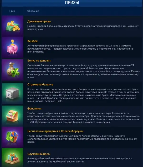 Призы за активную игру