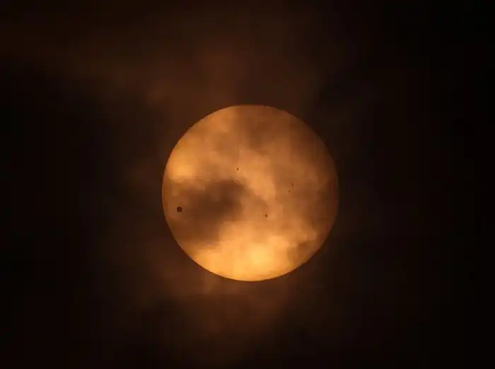 Небольшая надежда на то, что ветру удастся разогнать облака, не оправдалась - в момент прохождения Венеры по диску Солнца небо было закрыто тучами. А спустя 2 часа после окончания редкого космического явления Солнце снова засияло над Пондишери.