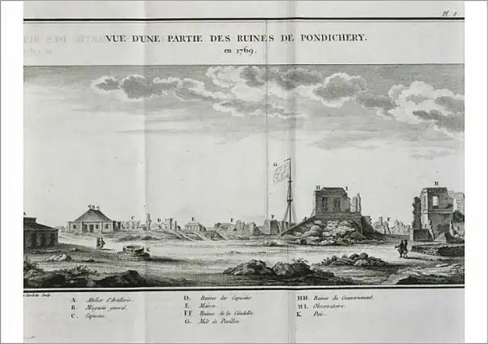 Пондишери. Гравюра, сделанная Гийомом Ле Жантилем во время путешествия по Индийскому океану