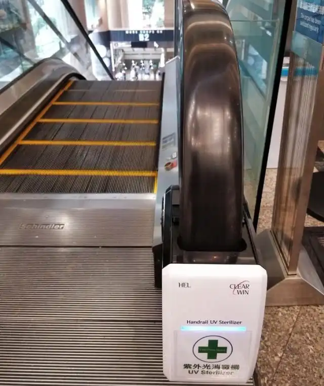 Поручни на эскалаторах дезинфицируются ультрафиолетовым стерилизатором