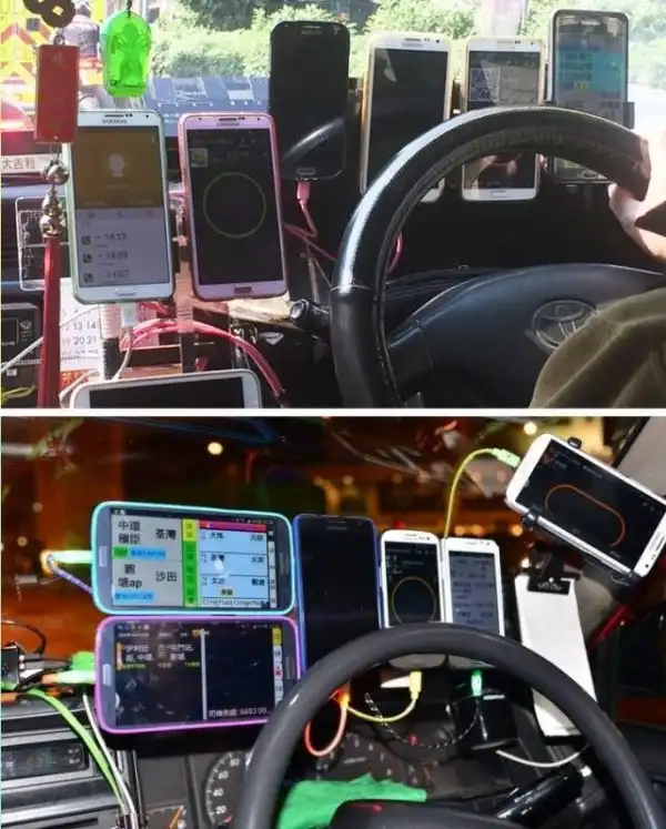 Гонконгские таксисты размещают в своих машинах по 5-10 телефонов и все для разных целей