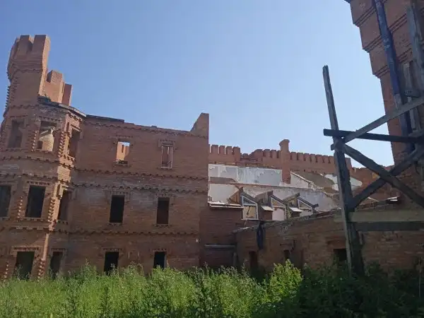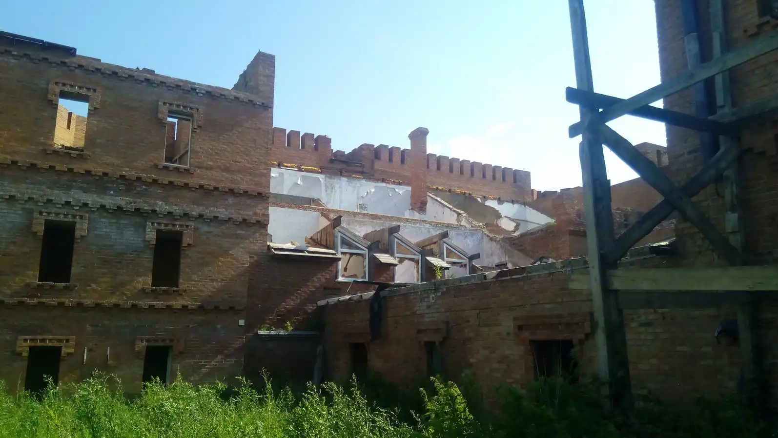 внутри периметра стен увидели дворец красного кирпича о четырёх этажах.