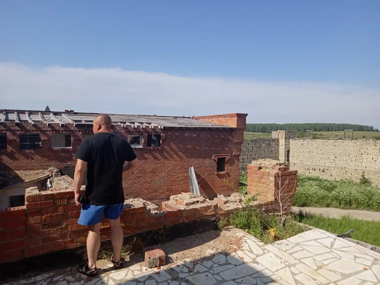 замок расположился в деревне Кабаново, на её окраине... встретил нас высоченным забором высотой 9 метров. Каменные средневековые стены..