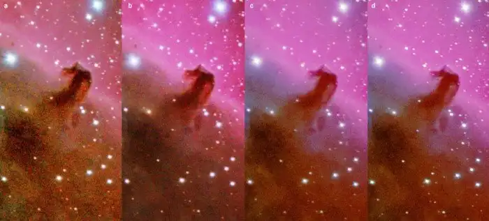 Туманность Конская голова в созвездии Ориона. Постепенно убирая шумы, получаем чистый снимок