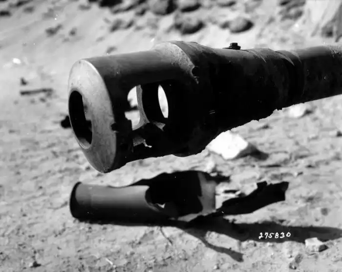 Разбитый дульный тормоз немецкой 88-мм противотанковой пушки PaK 43/41