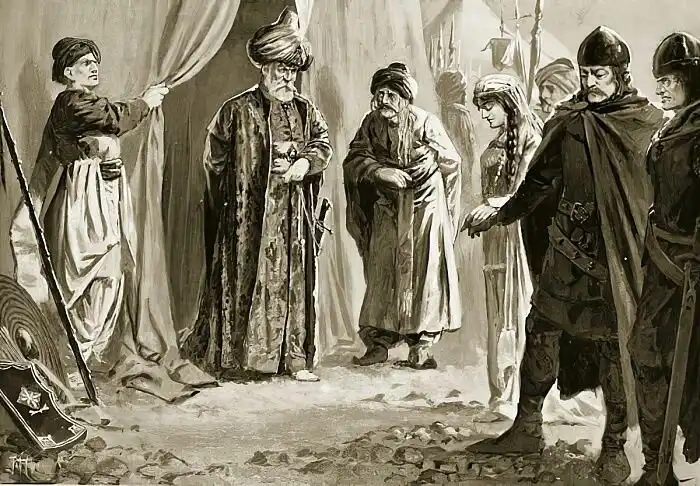Знаменитая история, когда царь Шишман отправляет свою сестру Тамару замуж за султана Мурада. Этот брак подтвердил положение Шишмана как османского вассала.