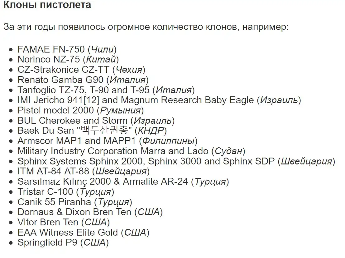 В восьмидесятых годах он изготавливался крупными партиями на экспорт. Пистолет оценили на Ближнем Востоке. Предприятие работало на экспорт, поставляя оружие в Турцию, Иран и Ирак.