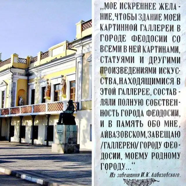 Жители города Айвазовского любили — он был простым человеком, общался с продавцами на базаре и рыбаками. Не жалел времени и денег, чтобы сделать жизнь в городе лучше — не столько для себя, сколько для других. Во время сильной засухи он построил водопровод, по которому из принадлежащего ему источника в город каждый день текло 50 тыс. ведер чистой воды. Художник спонсировал строительство железной дороги и открыл картинную галерею, которую завещал родному городу.
