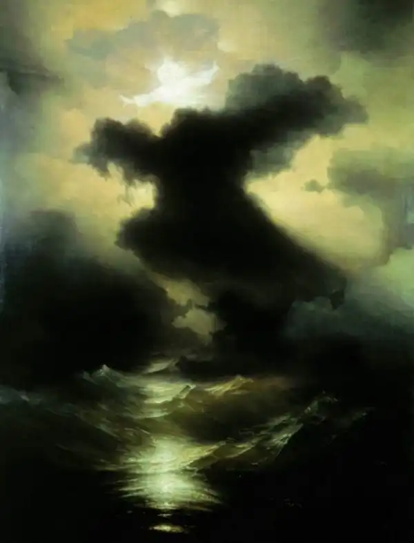 Самая мистическая картина Айвазовского — «На смерть Александра III». Художник написал ее под впечатлением от смерти императора, с которым был знаком лично, и вложил в работу всю свою скорбь. Больше всего загадок связано с тем, кого именно изобразил мастер. Одни видят на картине усатого мужчину, другие — вдову в черном, третьи — призраков. С разных ракурсов на полотне проступают новые образы.