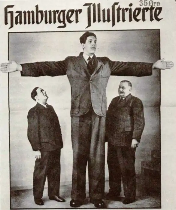 Открывает тройку самых высоких людей в мире американец Джо Роган. Он родился в конце 19 века (более точные данные отсутствуют) в семье бывшего раба. Когда мальчику исполнилось 13 лет, он активно пошел в рост и не прекращал расти до самой смерти. К 20 годам Роган имел серьезные проблемы с суставами и мог ходить только с помощью костылей. Умер мужчина приблизительно в 40 лет.