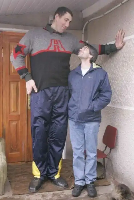 Среди людей, живущих в настоящее время, самым высоким человеком планеты является турок Султан Кёсен. Сейчас мужчине 36 лет, он живет на родине и занимается сельским хозяйством. Родители Султана среднего роста, да и сам мальчик родился совершенно нормальным. Причина, по которой Кёсен перешагнул отметку 2,5 метра — опухоль гипофиза и гормональный сбой. Врачам удалось вылечить парня и остановить его рост. Теперь он получил возможность прожить полноценную жизнь. Сейчас турок женат и практически не жалуется на здоровье, однако передвигаться ему приходится при помощи костылей. Еще одна проблема Султана — отсутствие на прилавках магазина вещей его размера. Одежду и обувь ему шьют на заказ.