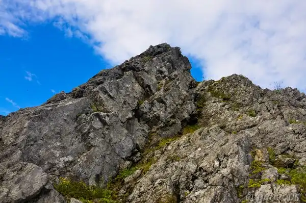Скала впечатляет! Просто посреди поля из земли вылезла скала из бело-серой твёрдой скальной породы.