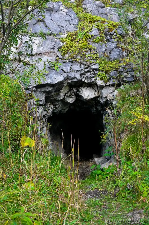 Скалу обошли вокруг и слева от неё обнаружился елезаметный вход в пещеру. Пещера рукотворная. Выдолблена неизвестно кем, когда и для чего.