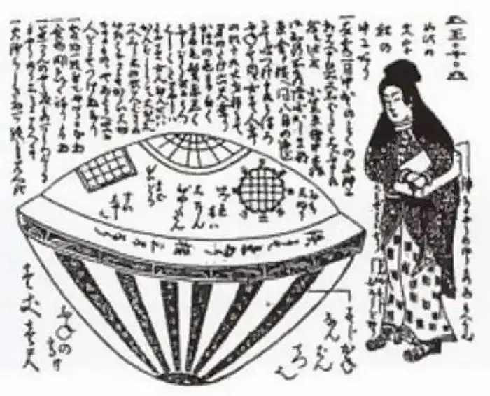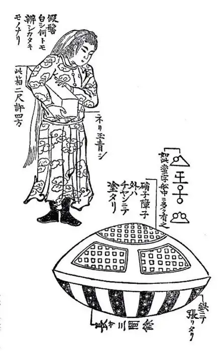 Но что же говорят и пишут по этому поводу современные исследователи? Очень многие обратили внимание на то, что внешне «уцуро-бунэ» очень напоминает «летающую тарелку». Само собой, представить себе НЛО «из розового дерева с обшивкой из бронзовых пластин» довольно затруднительно, но о каких других материалах вообще имели представление малограмотные японские рыбаки начала XIX века? Например, когда жителям примитивных племён, живущих на островах Тихого Океана, впервые показали изделия из пластмассы, те были на 100% убеждены, что это кора неизвестного им дерева! Так что рассказы про дерево и бронзу во внимание можно не принимать. А всё остальное – и форма, и круглые иллюминаторы, и размеры – вполне подходило под традиционное описание «летающей тарелки». Ну а «принцесса» тогда получалась самой настоящей инопланетной гостьей...
