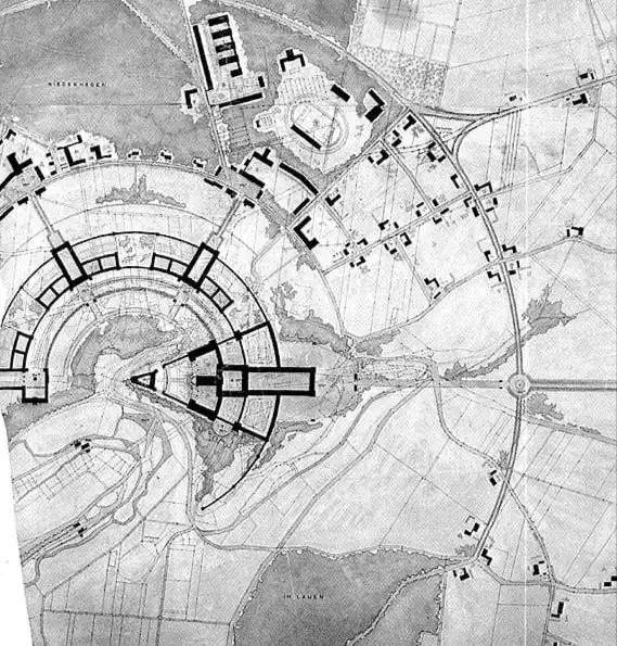 Рейвнскрофт отождествляет здесь Копье Судьбы и Святое Копье, входящее в состав атрибутов императорской власти, и утверждает, Гиммлер сделал его «сквозной темой расположения и символического украшения помещений». Глядя на проект расширения замка и в самом деле нельзя не увидеть очертания копья.