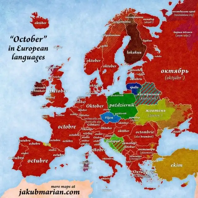5. Слово «октябрь» на разных Европейских языках