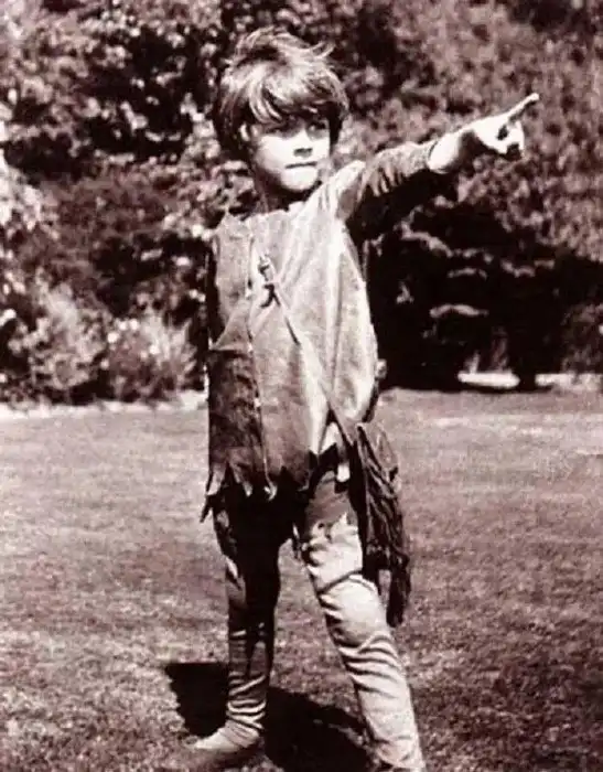 Питер Пэн из сказки шотландца Джеймса Барри. Он же Майкл Дэвис, сын друзей писателя — Сильвии и Артура Дэвис. Вообще волшебную повесть о вечном ребенке, не желающем стареть, Барри посвятил своему старшему брату, который погиб, катаясь на коньках за день до своего 9-летия.