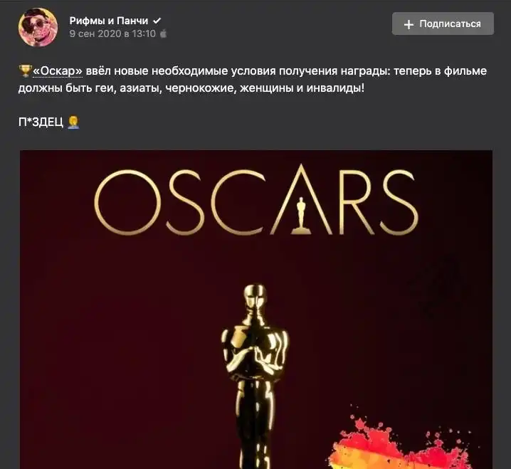 Кстати про Оскар. Все верно, кроме того, что не обязательно все эти группы должны быть в фильме. даже если все актеры будут белые блондины с голубыми глазами, натуралы и не инвалиды, монтировать фильм придется всем тем, о ком Оскар упомянул