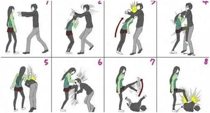 Удар в горло тоже хороший вариант, но помните, что этот удар достаточно опасный, так как может привести к смерти, используйте его если вам реально грозит смертельная опасность