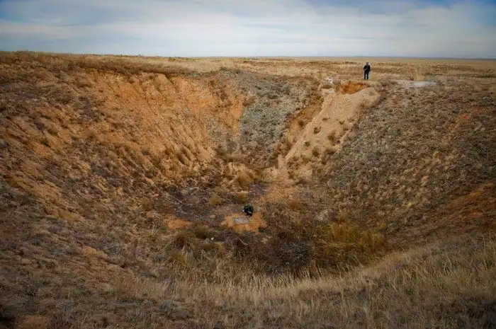 Воронка, оставшаяся от ядерного взрыва в Семипалатинске. Фото: voxpopuli.kz