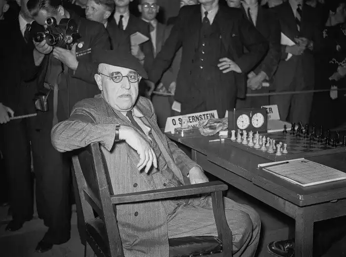 Осип Бернштейн был выдающимся шахматистом и талантливым юристом. Он получил блестящее юридическое образование, работал юрисконсультом в банке и выигрывал международные шахматные турниры. В 1918 году он попытался сбежать от большевиков за границу, но в Одессе его арестовали и приговорили к расстрелу. Руководивший расстрелом чекист увлекался шахматами и, увидев в расстрельном списке знакомую фамилию, спросил у приговорённого, тот ли самый он Бернштейн, которому нет равных в шахматах. Получив утвердительный ответ, чекист сказал что-то вроде следующего: "А если ты и правда Осип Бернштейн, давай сыграем в шахматы: выиграешь - живи, а если проиграешь - к стенке". Бернштейн с легкостью выиграл важнейшую партию в своей жизни, был отпущен на свободу и сбежал-таки во Францию. Эту историю Бернштейн поведал американскому шахматисту Арнольду Денкеру в 1946 году.