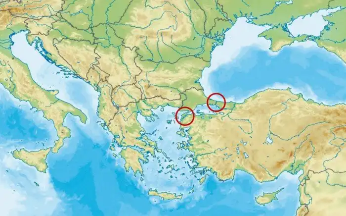 Зато есть один интересный и довольно необычный географический объект – пролив Дарданеллы (названный как раз в честь того самого Дардана). Этот пролив, соединяющий Средиземное и Мраморное моря, по форме больше похож на реку – для морского пролива он слишком узкий, всего километр с небольшим.
