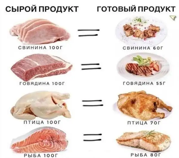На сколько грамм уменьшается мясо при обработке