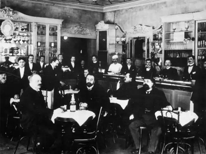 Приехавший в Петербург швейцарский предприниматель Доминик Риц-а-Порта исхлопотал в Cенате разрешение открыть заведение нового типа, в котором посетители могли бы купить напитки, сладости, бульоны, горячие пирожки, расстегаи, бифштексы, а также почитать свежие газеты и... поиграть в бильярд, шашки, шахматы или в карты.