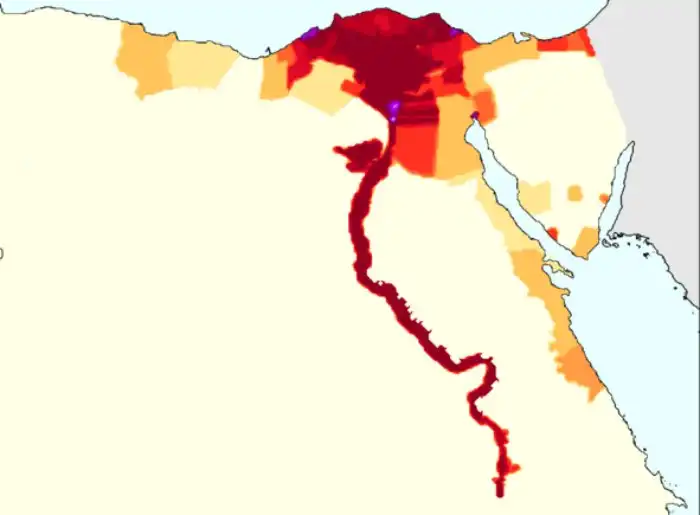 Карта расселения египтян. При аварии на дамбе пострадают почти все жители Египта