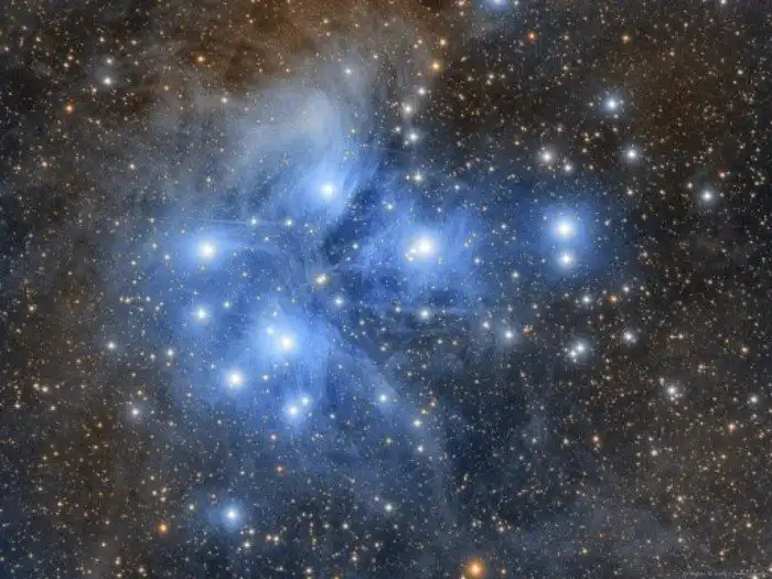 Даже в школьный телескоп Плеяды превращаются в красивейшую бриллиантовую россыпь из десятков звёзд, а в мощный телескоп этих звёзд видно уже как минимум тысячу. Причём тесное расположение звёзд в данном случае не кажущееся – все звёзды из скопления Плеяд действительно являются «сёстрами», то есть возникли приблизительно в одно и то же время из одной и той же родительской туманности.