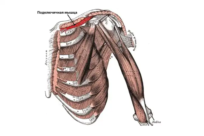 Признаком эволюционных процессов является и подключичная мышца. Этот небольшой мускул расположен между первой парой ребер и ключицами.