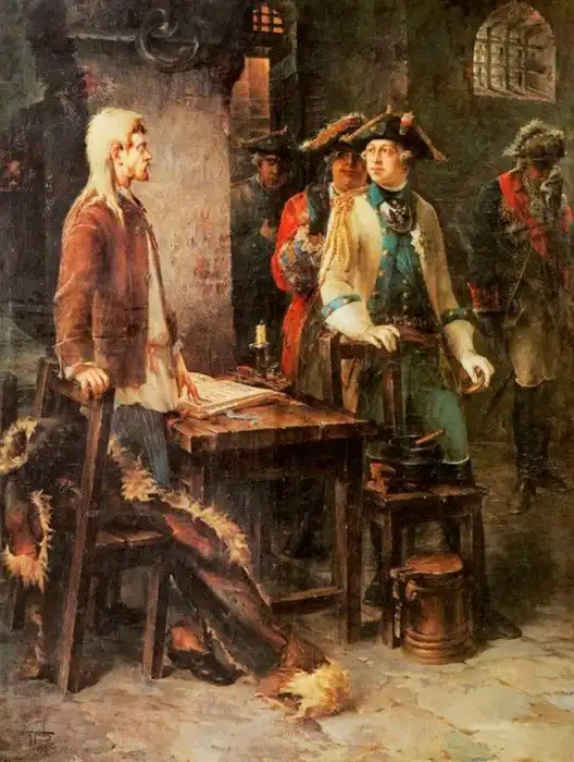 В 1803 году царь Александр I посетил тюрьму в крепости Корела. Царь пообщался с заключёнными, в том числе с семьей Емельяна Пугачёва.