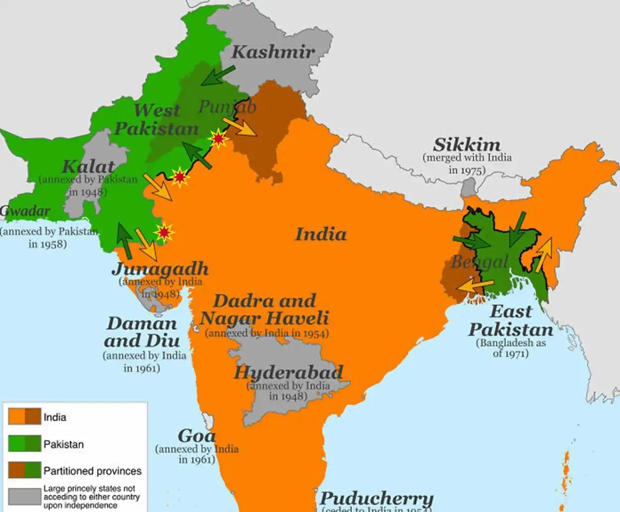 Линия Радклиффа – процесс разделения границы Индии и Пакистана в 1947 году был проведён наспех и не принимая во внимание религию местного населения. Радклифф не был географом и в целом провалил процесс. Миллионы умерли.